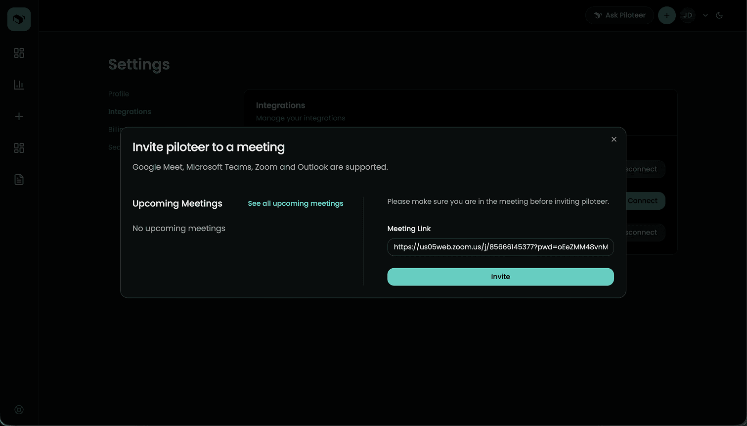 Enter you zoom link and click on invite