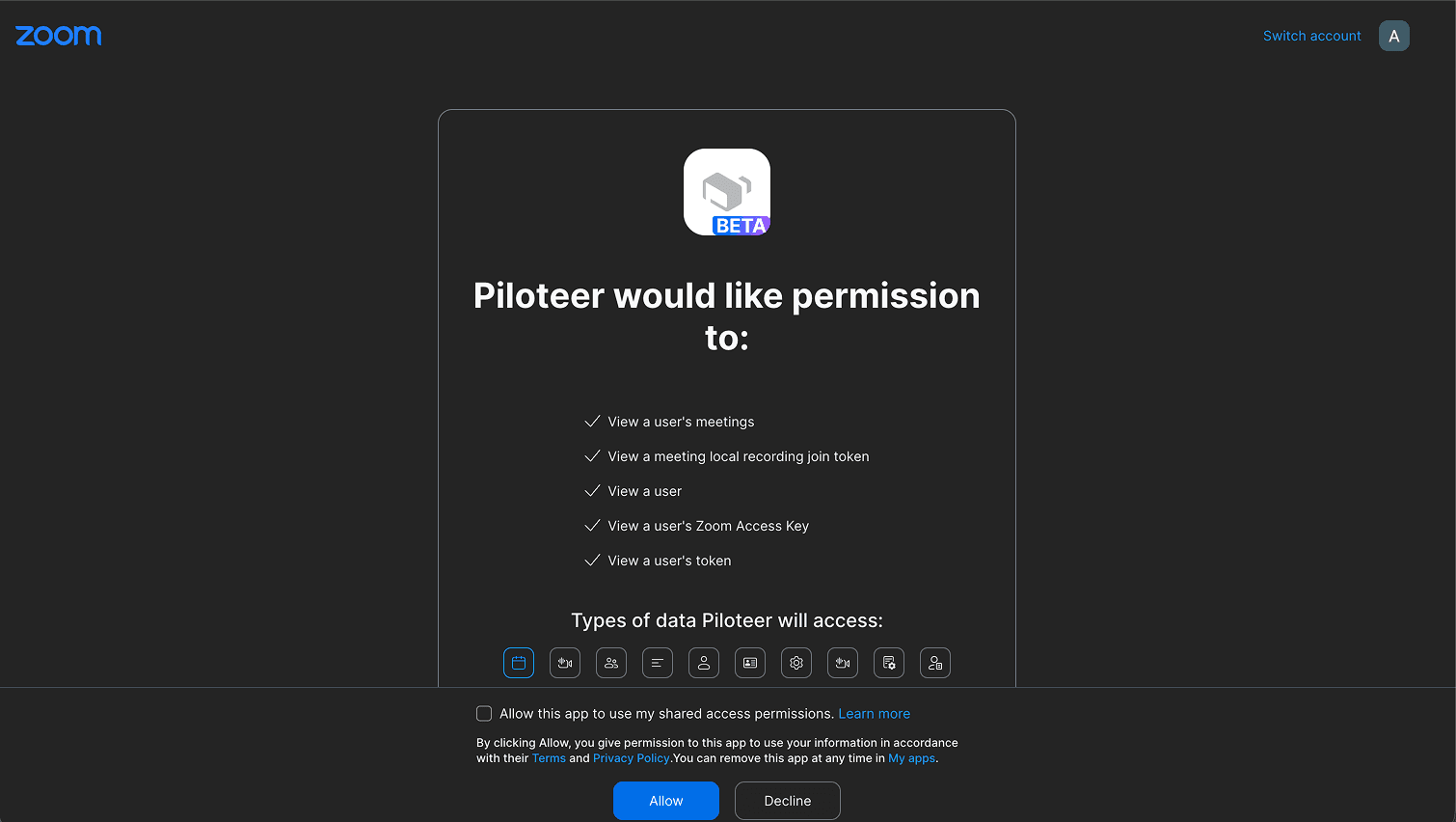 Login to your Zoom account and click Allow